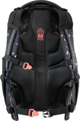 Der Rucksack ist besonders übersichtlich in mehrere Fächer aufgeteilt und enthält außerdem ein Organizer-Fach sowie ein Bücherfach. Durch Öffnen des hintersten Reißverschlusses lässt sich das Volumen zusätzlich um 5 Liter erweitern. Die Riemen, die außen am Rucksack angebracht sind, dienen der Befestigung von Jacken, Pullovern oder auch einem Helm, so dass diese nicht extra getragen werden müssen.